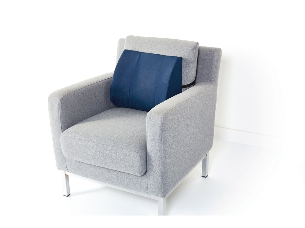 Pohodlný bederní polštář Vitility včetně pásu na upevnění k židli nebo křeslu. Vhodný především při bolestech zad. Rozměry 130 x 330 x 360 mm.