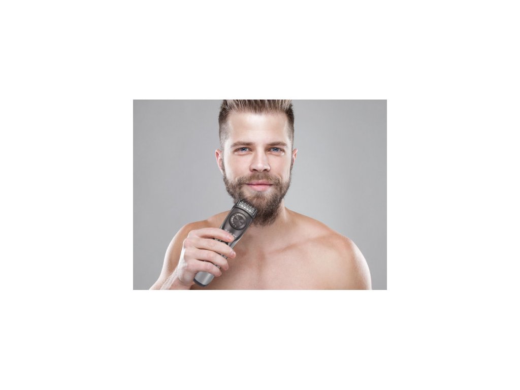 Dobíjecí zastřihovač vousů s kompaktním a moderním designem. Zastřihovač má praktický a přesný selektor pro nastavení 10 různých zastřihovacích délek (od 1 do 10 mm). Čepele z nerezové oceli jsou odolné a lehce odnímatelné pro snadné čištění. Holicí strojek má výdrž 60 minut, dobíjení baterie trvá cca 8 hodin při úplném vybití.