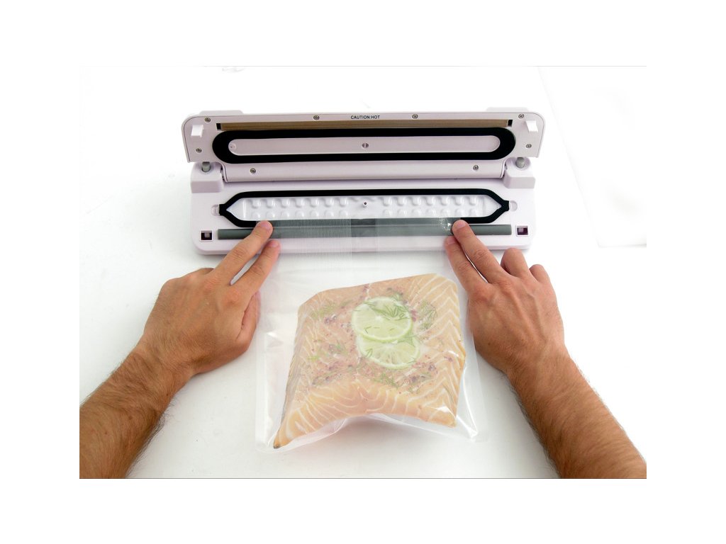 Přírodní skladování potravin bez konzervantů Ideální pro masa, ryby, zeleninu a ovoce Max. 30 cm šířka role vakuové fólie libovolné délky
