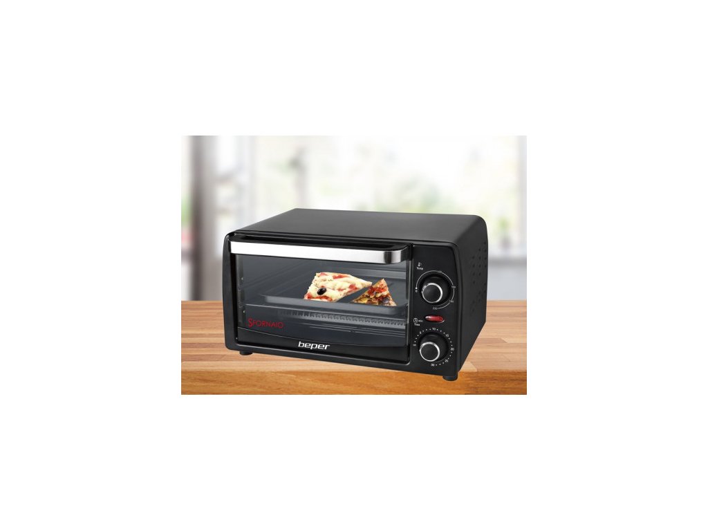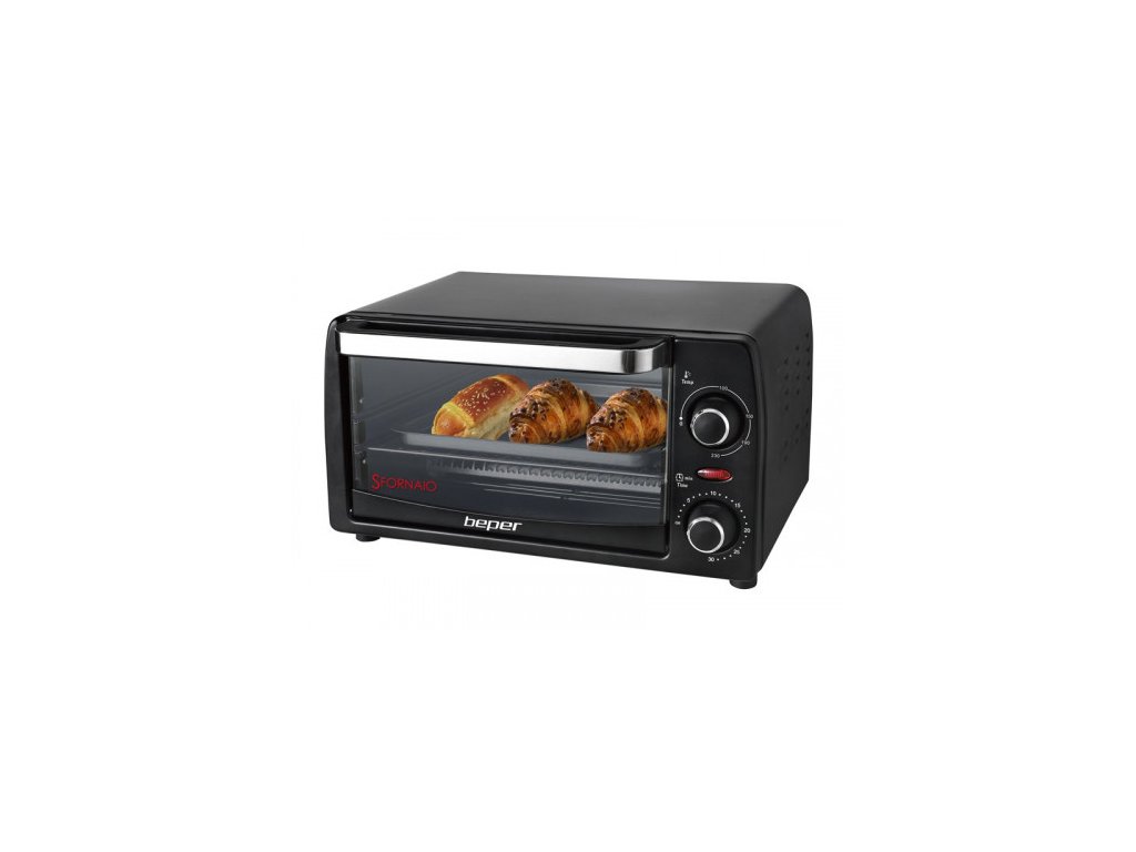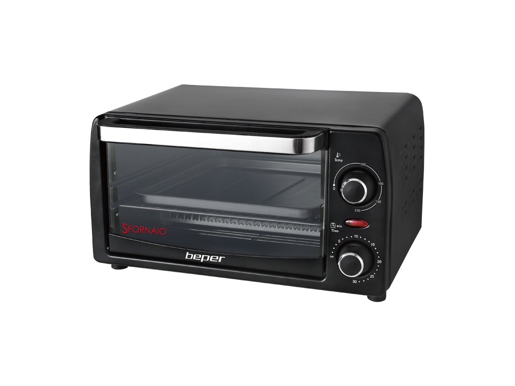BEPER 90882 elektrická trouba 12l - malá kompaktní trouba s uživatelsky přívětivým designem. Stylová a snadno uchopitelná rukojeť usnadňuje otevírání a zavírání. Spodní podnos na drobky a odkap je odnímatelný pro snadné čištění.