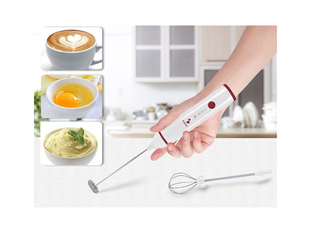 Klasická pěnící metlička je ideální pro šlehání mléka, přípravu cappuccina a čaje matcha. Druhá balónková hlava se podobá tradiční metličce, je velice praktická , využijete ji na šlehání různých potravin, jako jsou vejce, krémy a smetana. Milujete horkou čokoládu? Napěňovač je perfektním nástrojem pro přípravu dokonalého šálku horké čokolády.