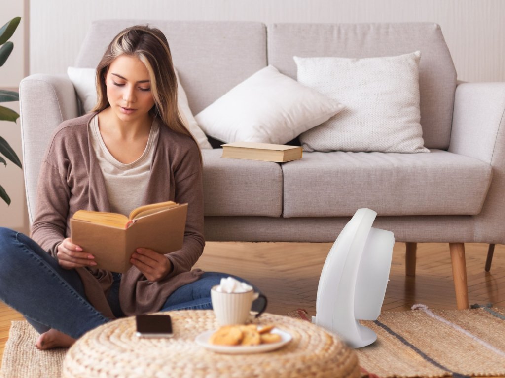 Kompaktní horkovzdušný ventilátor pro topení s možností nastavení 2 výkonů: režim eco pro úsporu energie a komfortní režim pro maximální teplo, a také pro zchlazení, jelikož nabízí režim ventilátoru pro cirkulaci vzduchu v každém ročním období.