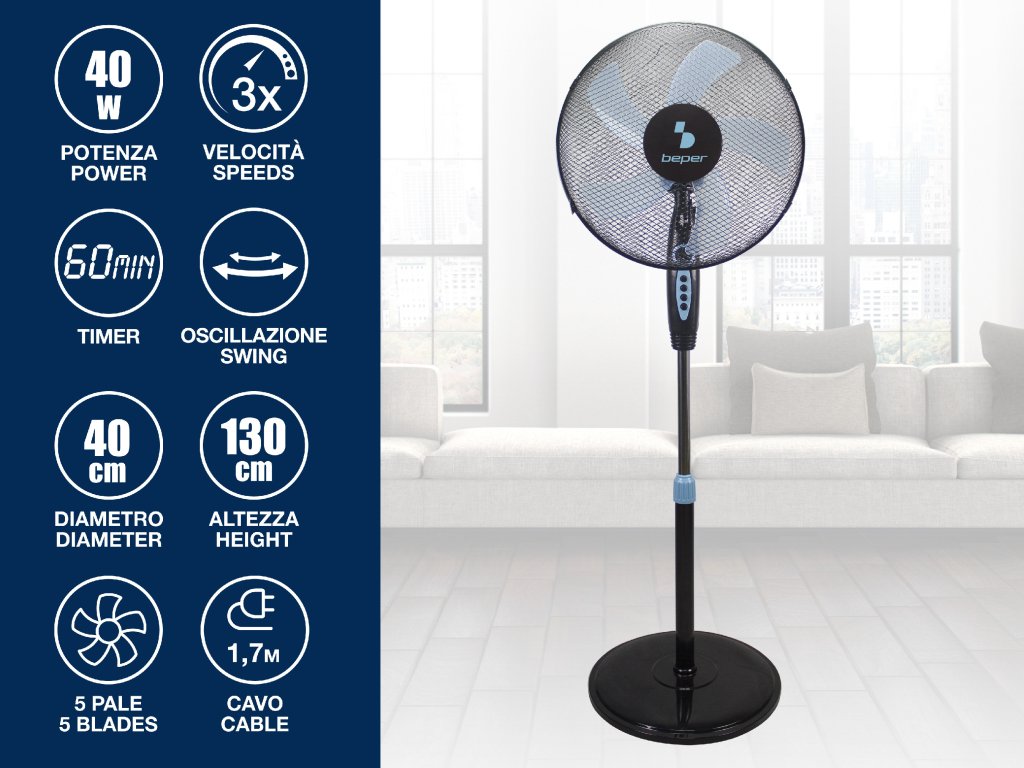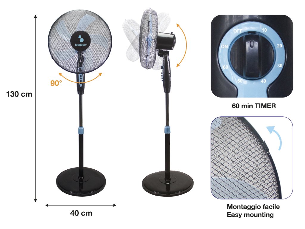 Beper P206VEN130 stojanový ventilátor 40cm, 3 rychlosti, oscilace, časovač, 40W