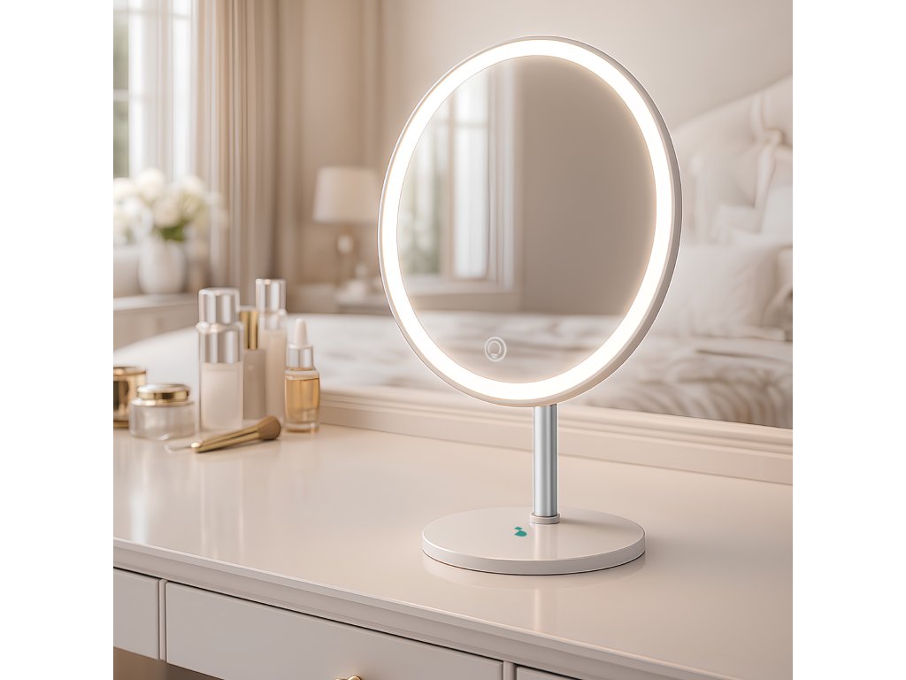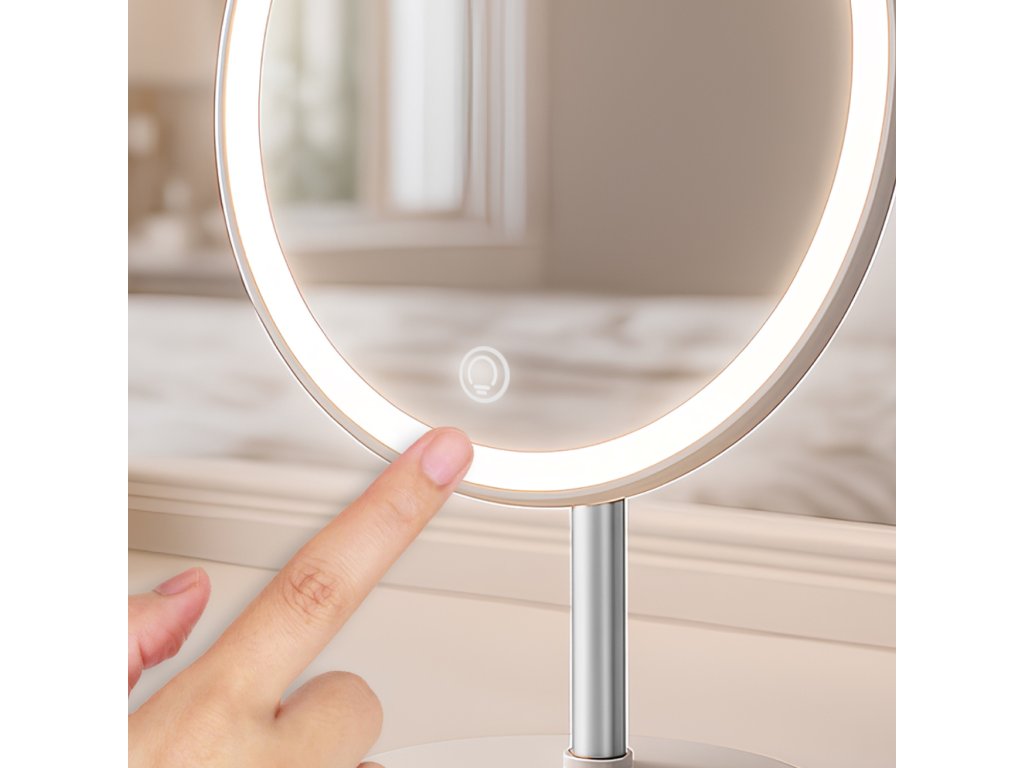 Moderní kosmetické zrcátko s LED osvětlením, které vám zajistí perfektní podmínky pro každodenní líčení i péči o pleť. Díky třem světelným režimům si snadno přizpůsobíte osvětlení aktuální situaci – od studeného denního světla až po teplé večerní tóny.