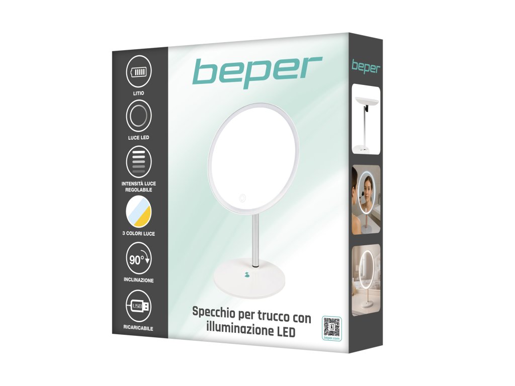 Beper P302VIS051 dobíjecí kosmetické zrcátko s LED osvětlením, USB