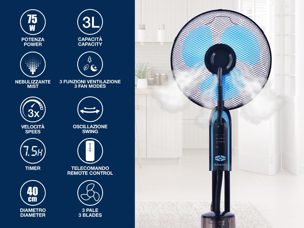 Beper VE502 stojanový ventilátor se zvlhčovačem vzduchu, 75W (průměr 45 cm)