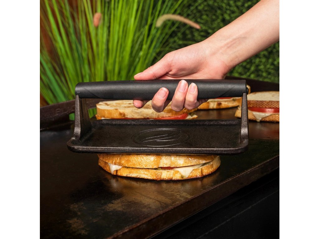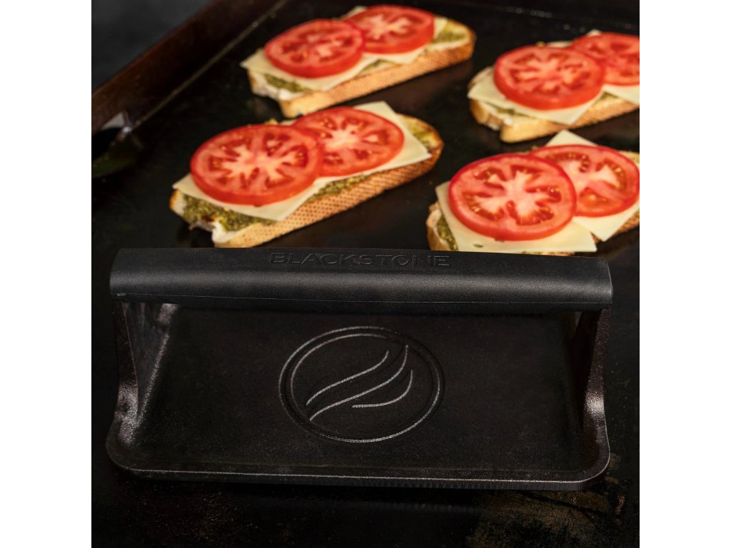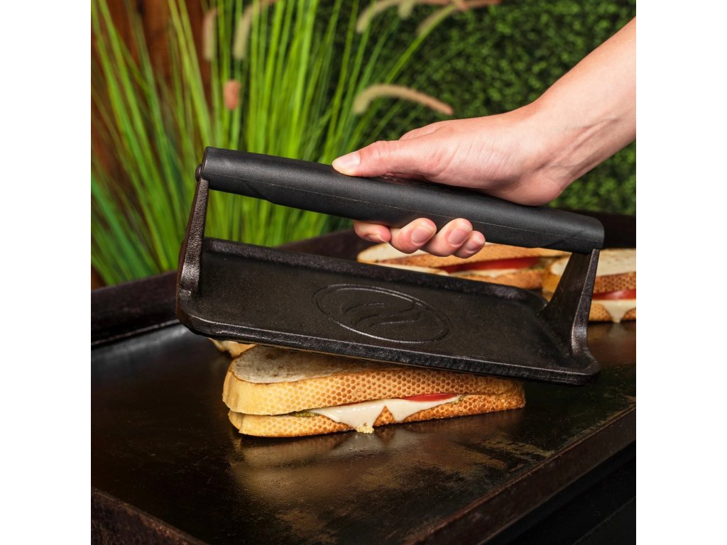 Tento střední litinový lis na grilovací desku je nepostradatelným doplňkem pro pečení šťavnatých burgerů, panini, steaků nebo slaniny na grilovací plotně. Díky svému robustnímu konstrukčnímu provedení vám umožní rovnoměrné přitlačení pokrmů a dosažení dokonalé karamelizace a křupavé textury.