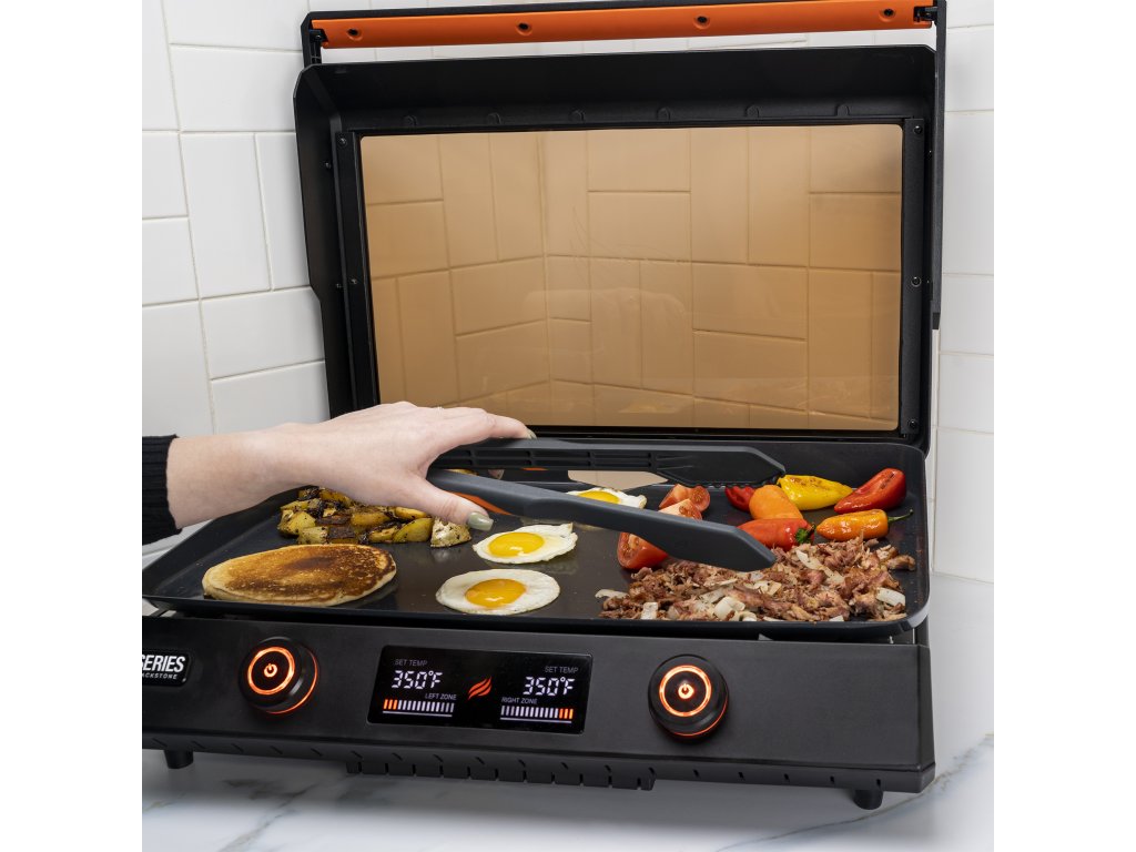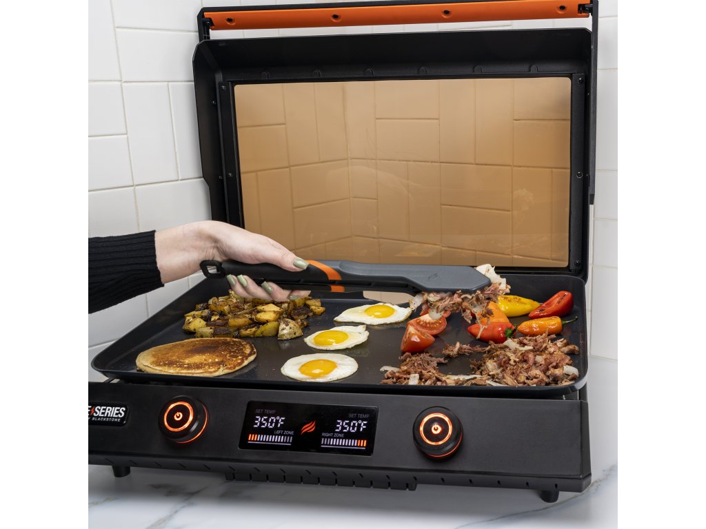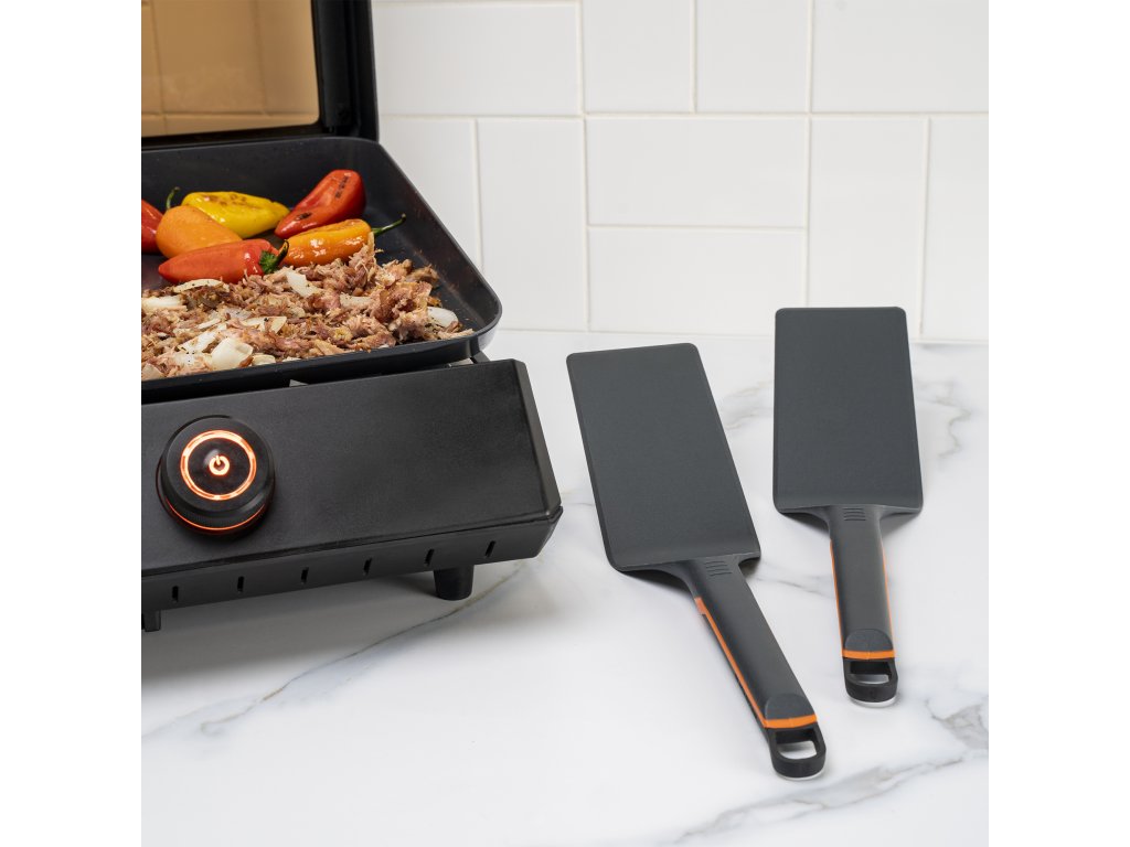 Užijte si vše, co potřebujete k přípravě snídaně, oběda i večeře na vašem Blackstone E-Series grilu s touto praktickou 4dílnou sadou náčiní. Dvě obracečky a kleště vám umožní pohodlně míchat, otáčet a přemisťovat jídlo na grilovací ploše, zatímco škrabka se postará o snadné čištění po vaření.