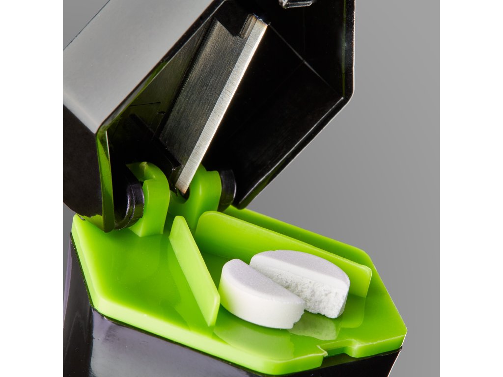 4. Drtič tablet - Ve spodní části můžete tablety rozdrtit. Přišroubováním horní části se tableta rozdrví v přihrádce.