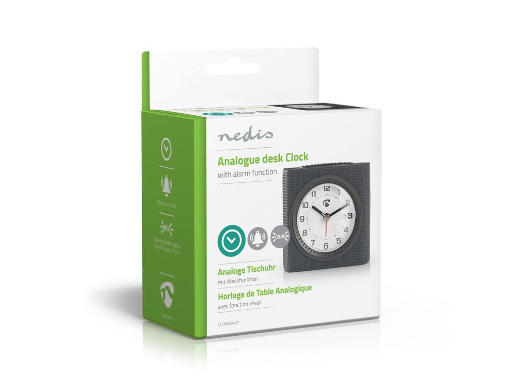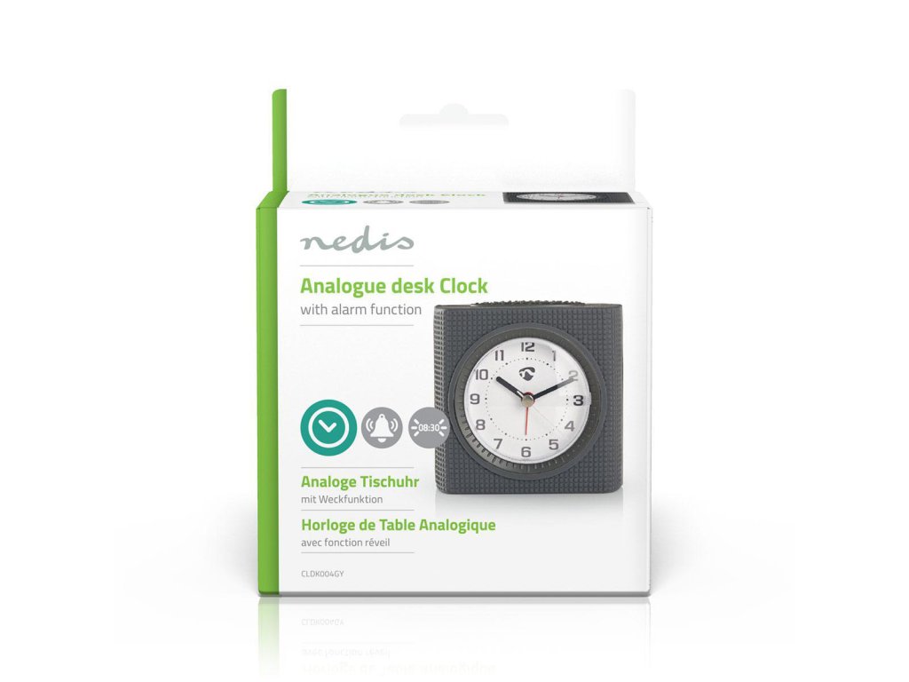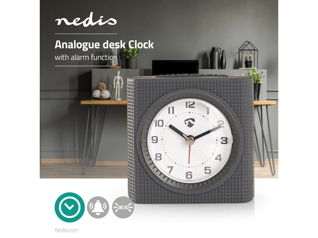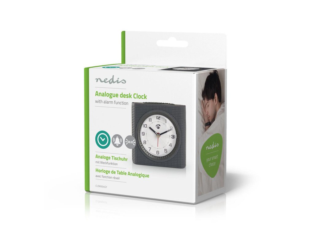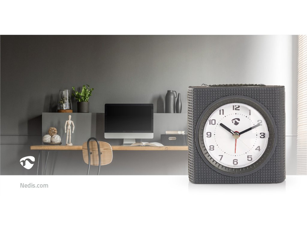 Nedis CLDK004GY stolní ručičkový budík, čtvercový šedý