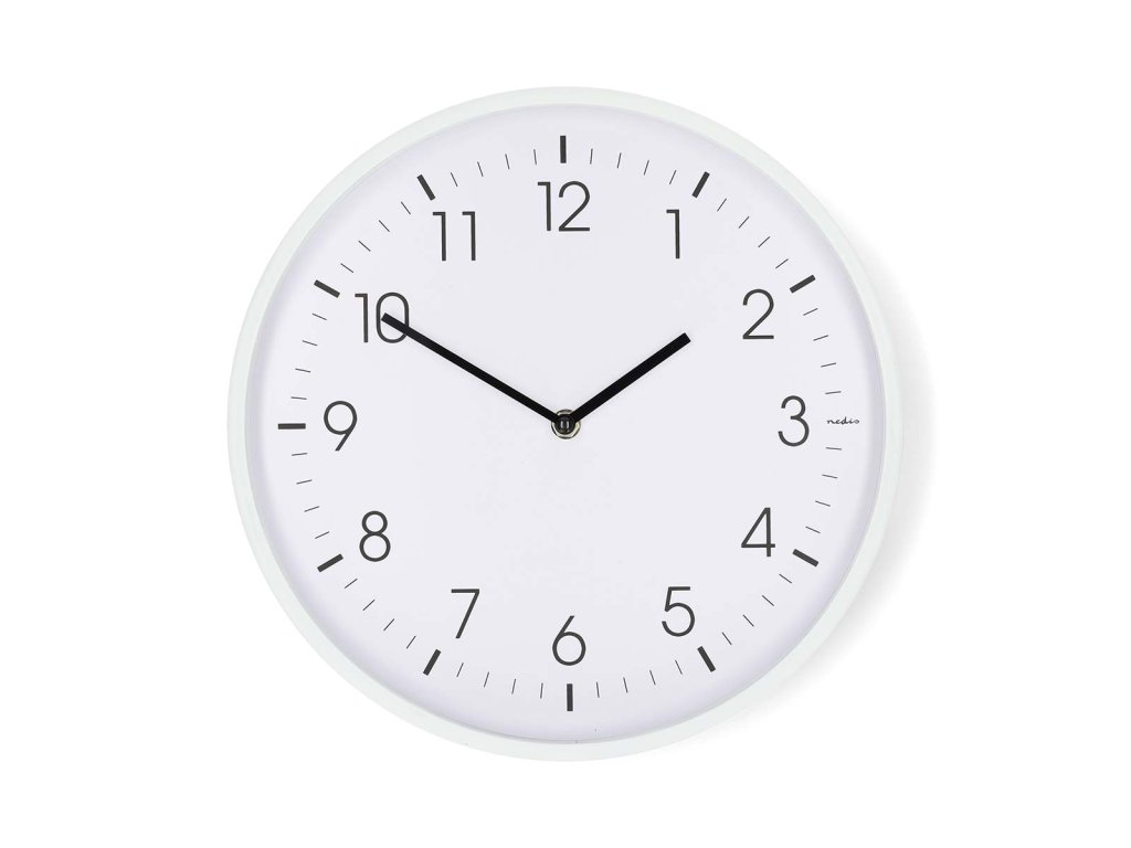 Nedis CLWA1226WT nástěnné hodiny | Průměr: 300 mm | Plast | Tichý pohyb | Bílá