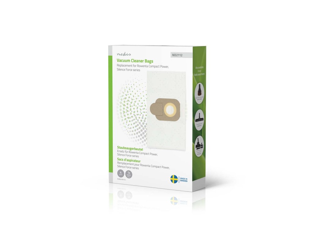 Nedis DUBG2100-4.1 sáčky pro vysavače Rowenta Compact Power Series, Rowenta Silence Force Series, 4 ks + 1x motorfiltr DUBG2100-4.1