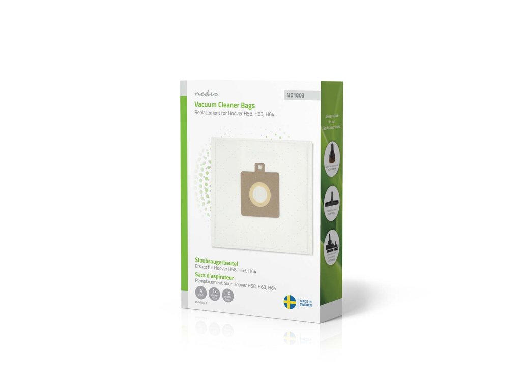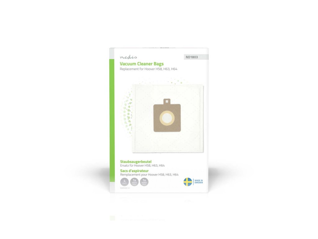 Nedis DUBG600-4.1 sáčky pro vysavače | 4 ks | Syntetický | náhrada pro Hoover H58 | Bílá
