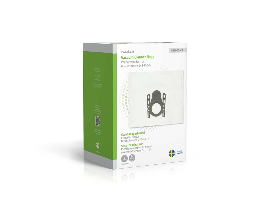 Nedis DUBG700-8.2 sáčky pro vysavače | 8 ks | Syntetický | náhrada pro Bosch / Siemens D - E - F - G - H | Bílá