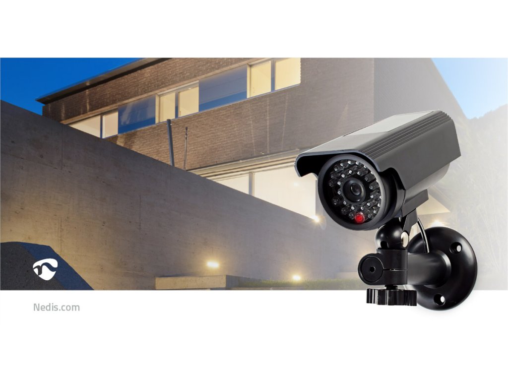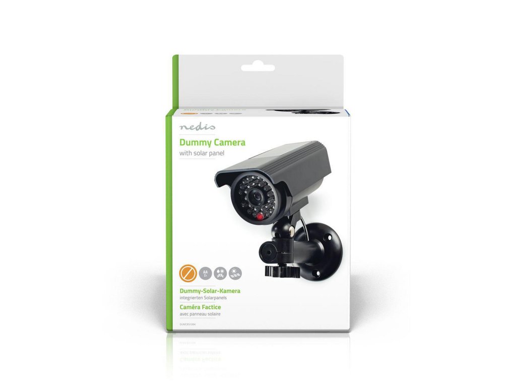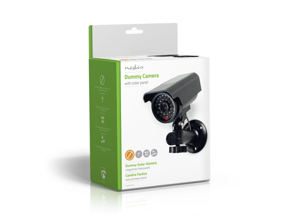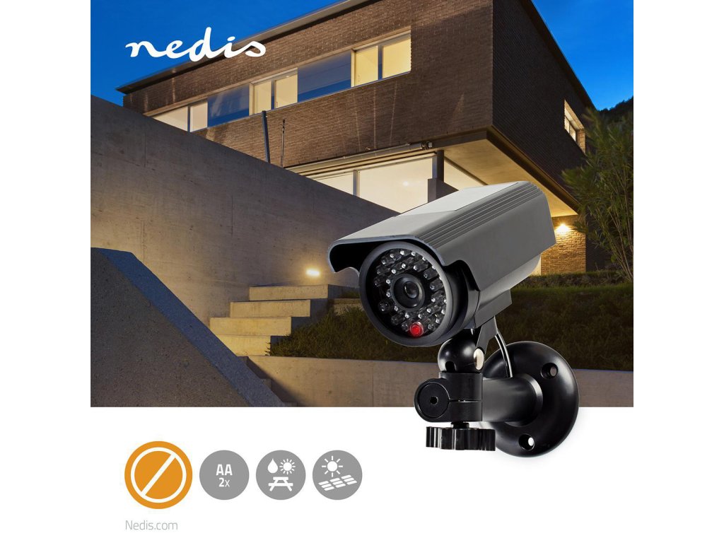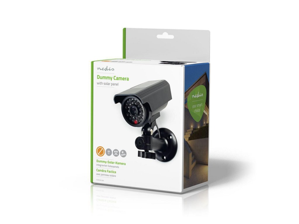 Tato Nedis atrapa venkovní bezpečnostní kamery vás ochrání před zloději a to jen za zlomek ceny, kterou byste zaplatili za skutečnou kameru. Má zabudovanou blikající LED diodu, díky níž je atrapa k nerozeznání od skutečné kamery. Atrapa bezpečnostní kamery je napájena dvěma dobíjecí AA bateriemi, které jsou automaticky dobíjeny zabudovaným solárním panelem. Pomocí přiložených šroubků je snadné atrapu namontovat.