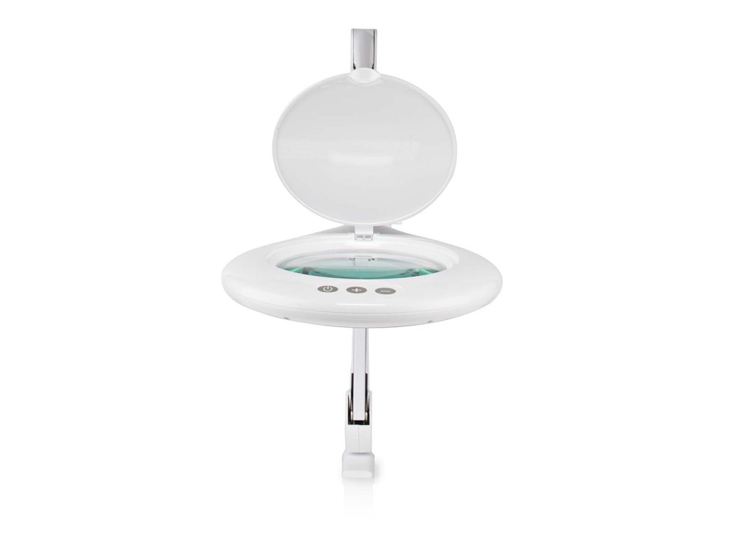 Osazena skleněnou čočku o průměru 120 mm se 3 dioptriemi, což odpovídá 1.75x zvětšení. Lampa umožňuje vidět každý detail a je tak ideální pro jemné práce.