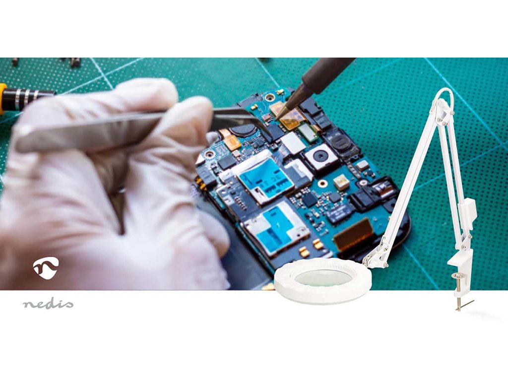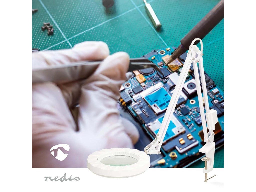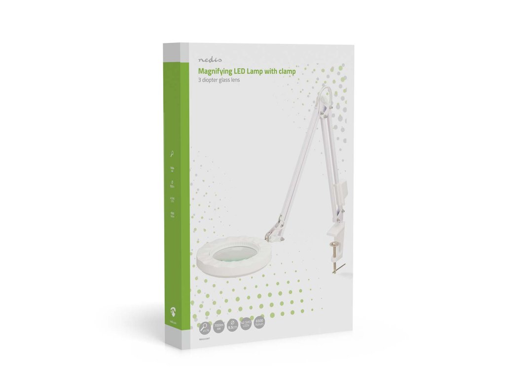 Tato zvětšovací lampa Nedis se stolní svorkou je dokonalým doplňkem každého pracovního stolu, ideálním pro detailní práce v domácnosti, dílně nebo kanceláři. LED diody SMD-LED jsou uspořádány v kruhovém vzoru kolem 100mm čočky a poskytují rovnoměrné osvětlení pracovního prostoru studeným bílým denním světlem.