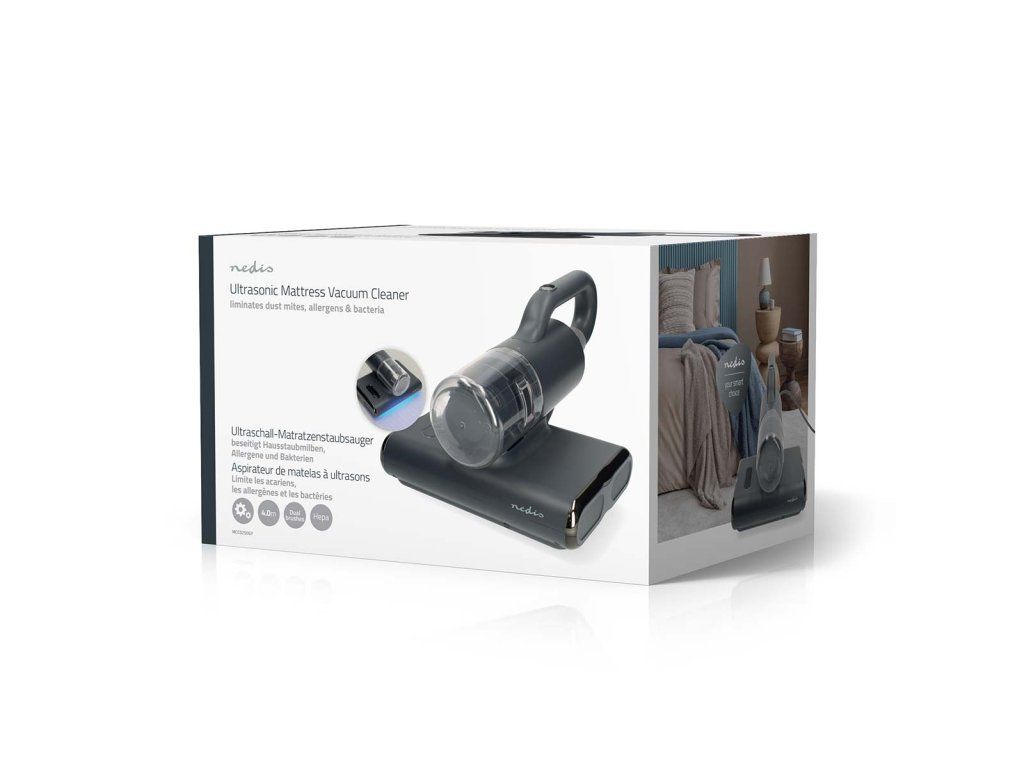 Díky svým multifunkčním schopnostem je ultrazvukový vysavač Nedis vhodný nejen na matrace. Použijte jej na pohovky, polštáře, záclony, pelíšky pro domácí mazlíčky a další čalouněné povrchy, abyste zajistili, že každý prostor pokrytý látkou ve vaší domácnosti zůstane čistý, svěží a bez alergenů.