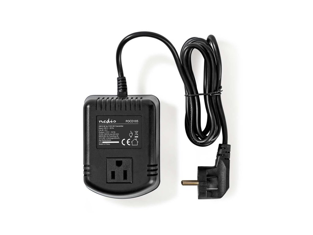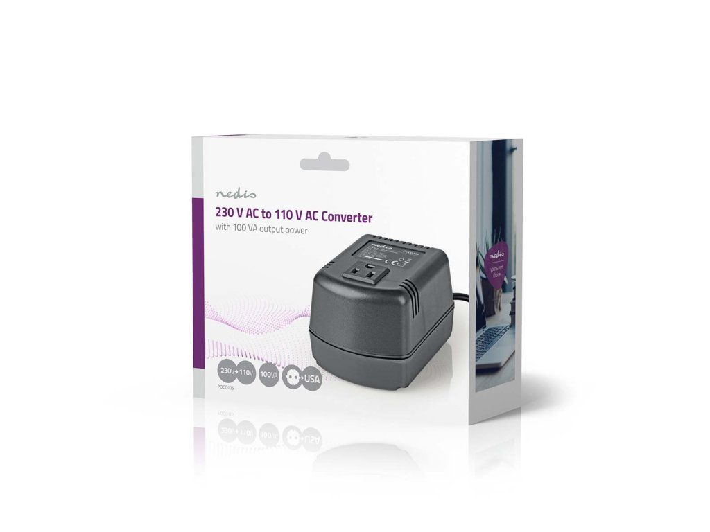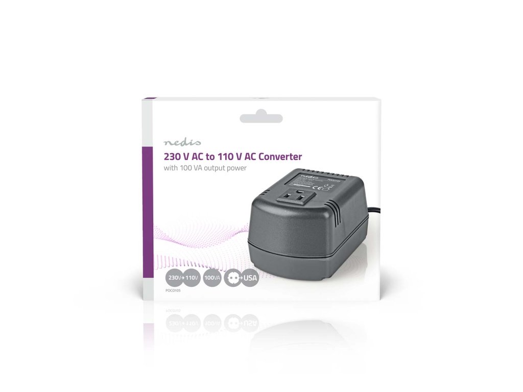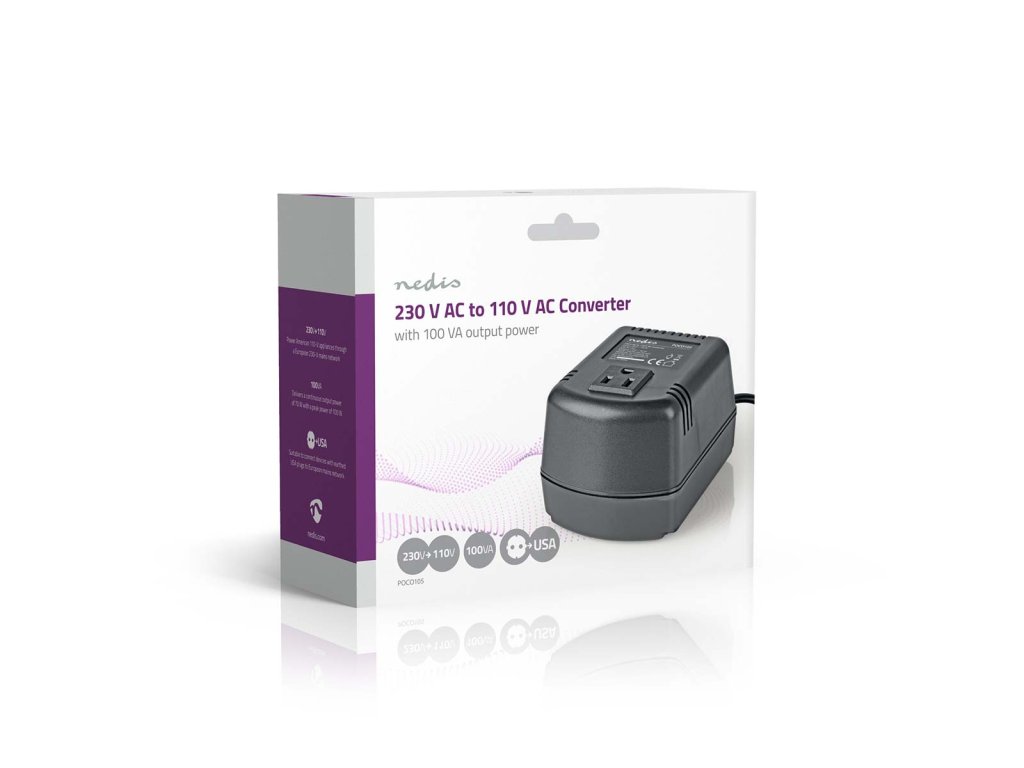 Nedis POCO105 měnič napětí 100 W, 230 V AC na USA 110 V AC, 0.9 A, zemněný