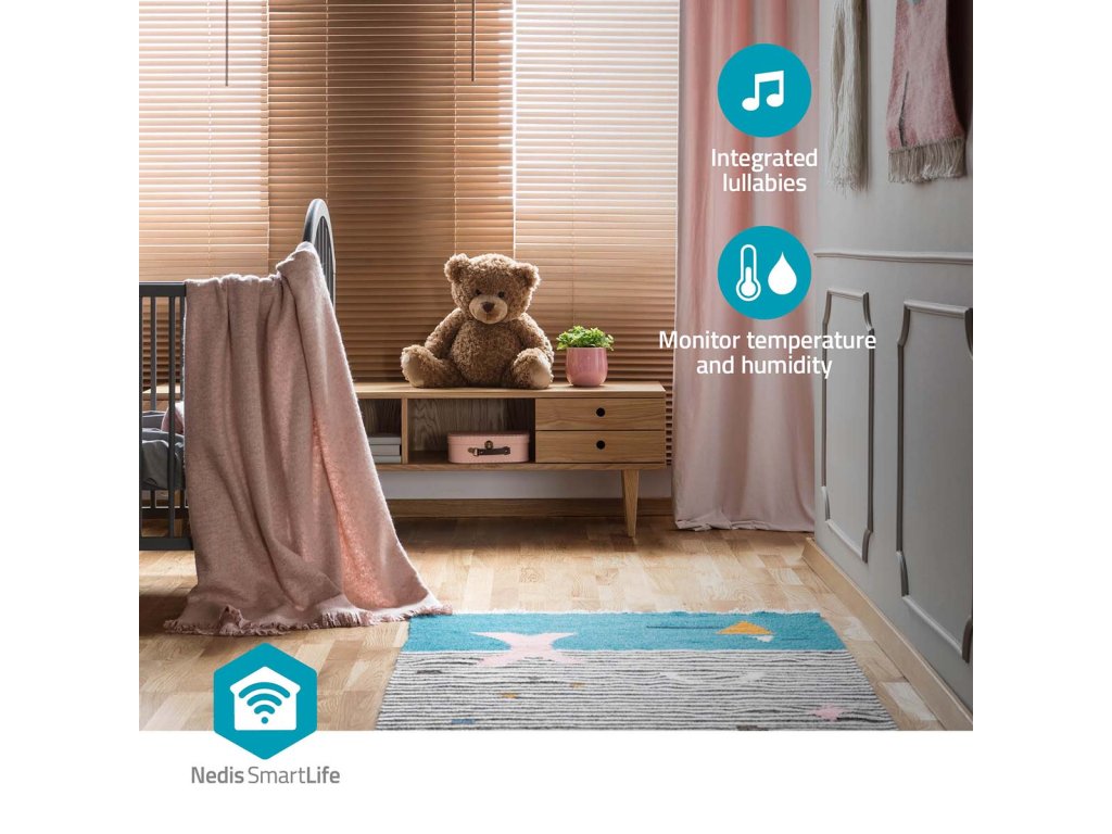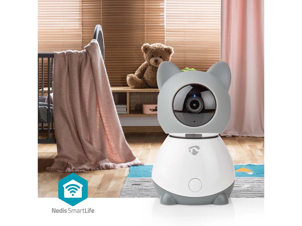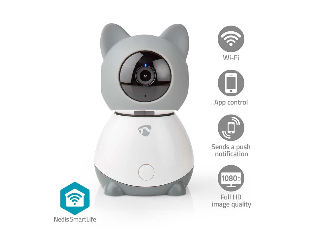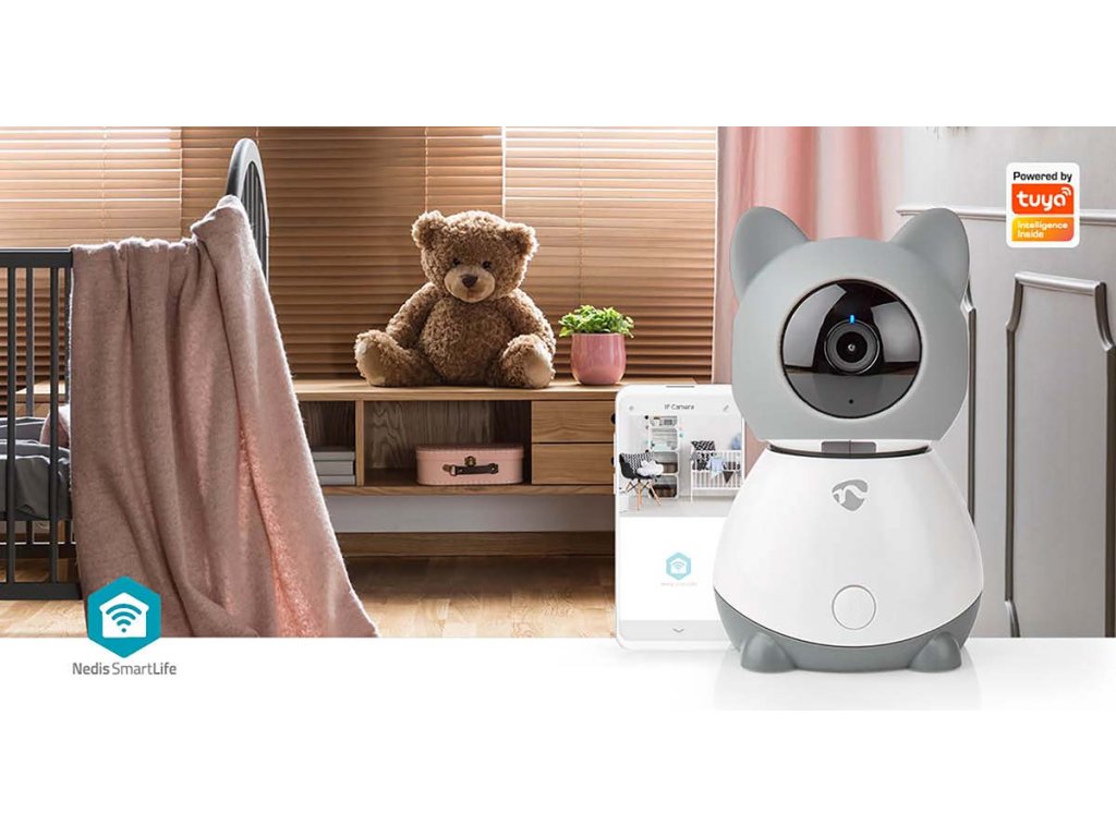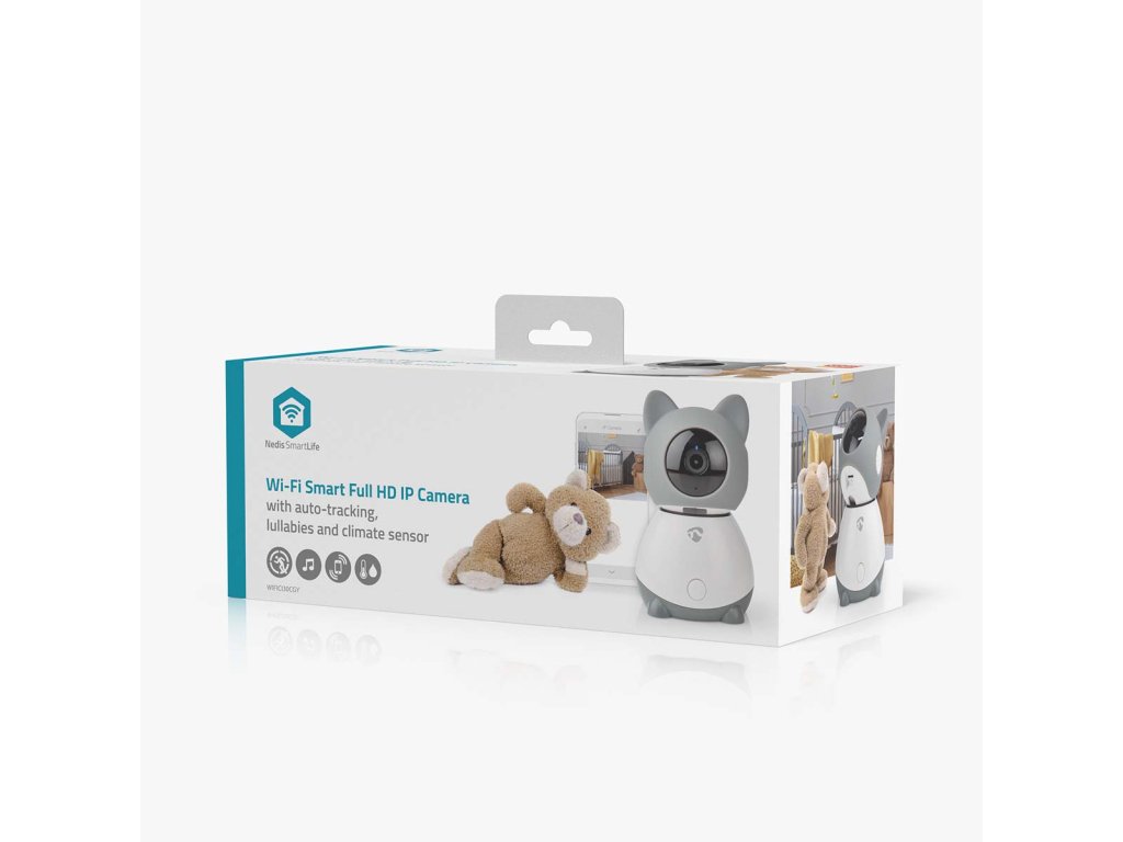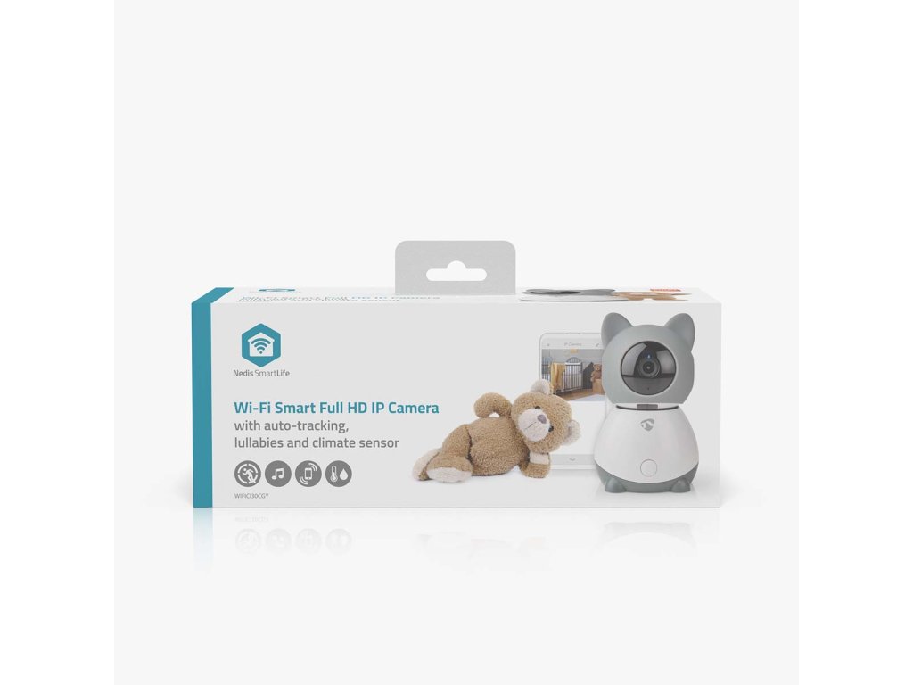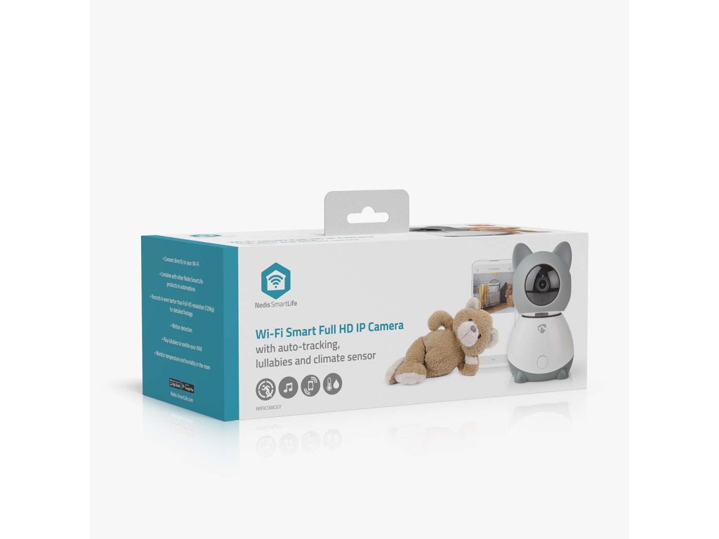 Nedis SmartLife chytrá chůvička/IP kamera, Full HD 1080p, otáčení a náklon, automatické sledování, klima senzor, ukolébavka (WIFICI30CGY)