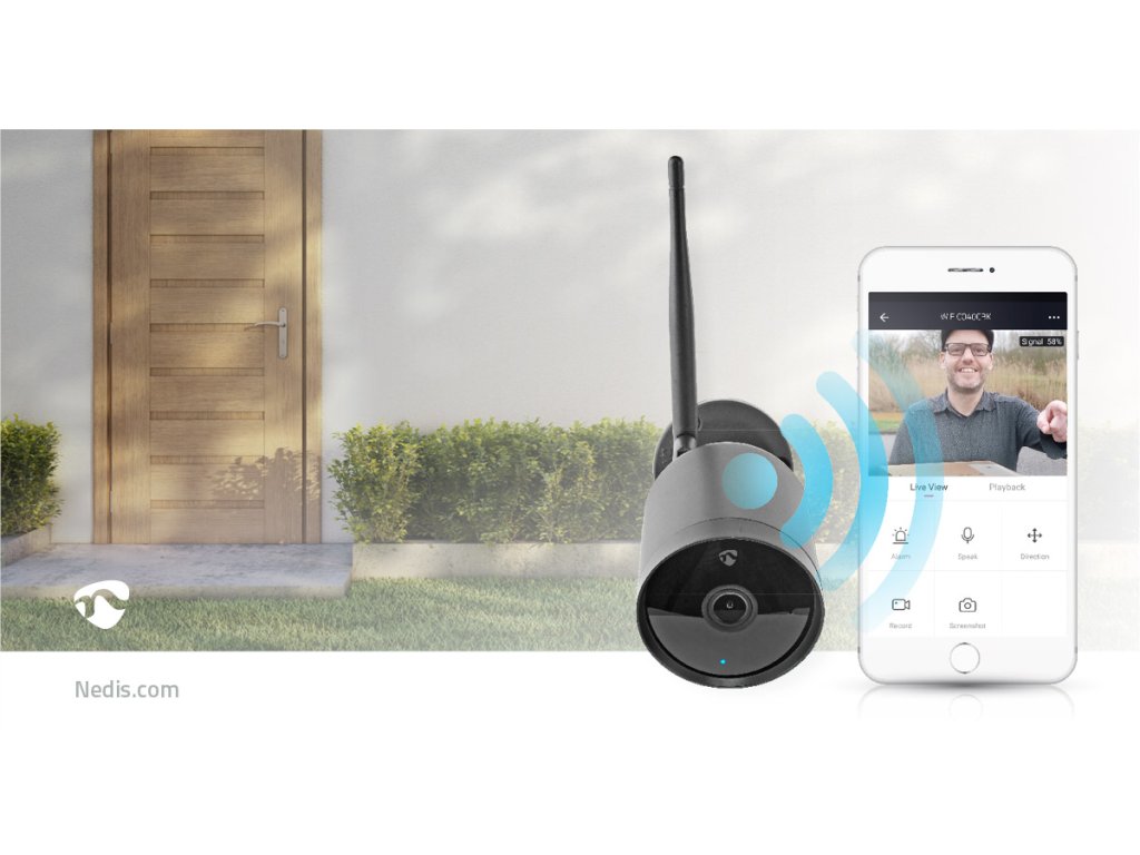 Domácí automatizace je opět o něco jednodušší. Nedis® SmartLife™ chytrá IP kamera z řady Nedis® Smart Home představuje snadno ovladatelnou venkovní Full HD IP kameru, kterou lze jednoduše připojit k Wi-Fi síti a sledovat okolí Vašeho domu s možností záznamu jakéhokoliv zvuku a pohybu. Vodotěsné kovové pouzdro této kamery s krytím IP65 v kombinaci s nočním viděním s přisvícením pomocí infračervených LED s dosahem 15 metrů zajišťuje delší životnost a vždy jasný výhled bez ohledu na roční období, den, noc či nepříznivé povětrnostní podmínky. Kamera umožňuje také obousměrnou komunikaci a lze ji použít podobným způsobem jako interkom.