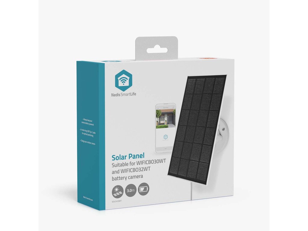 Nedis® solární panel s micro USB konektorem je určen k nabíjení Nedis® SmartLife™ kamery s vestavěným akumulátorem WIFICBO30WT/WIFICBO32WT. Umožňuje namontovat kameru kamkoli v dosahu signálu Wi-Fi.