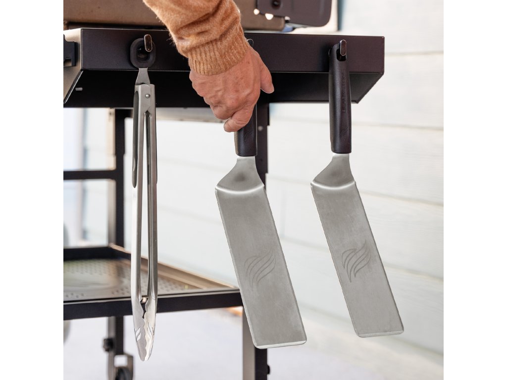 - Dvě boční police s háčky: Více prostoru pro přípravu a snadný přístup k náčiní díky háčkům.