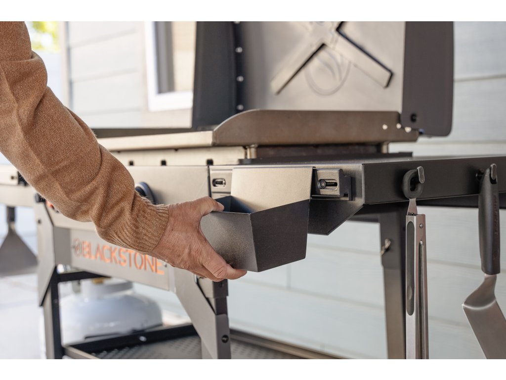 - Zadní systém odvádění tuku (Rear Grease Management): Odsuňte tuk a zbytky jídla dozadu pro snadné čištění.