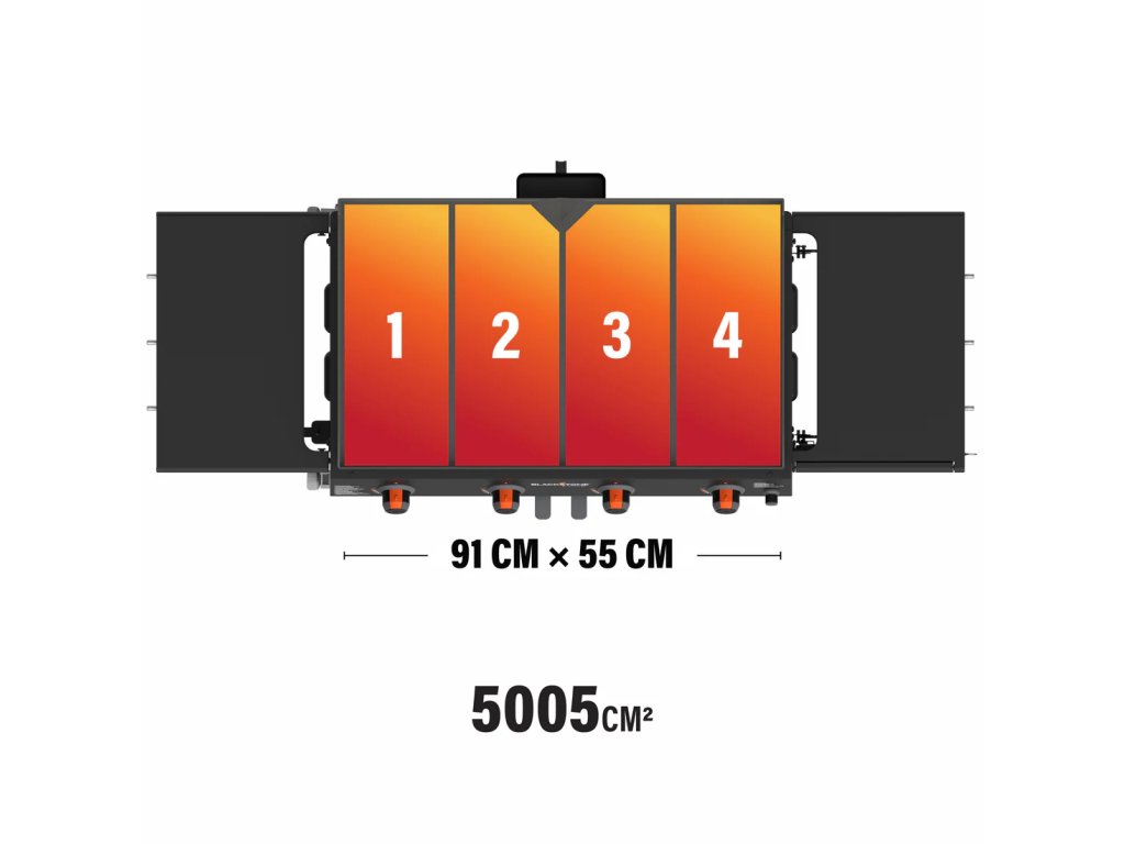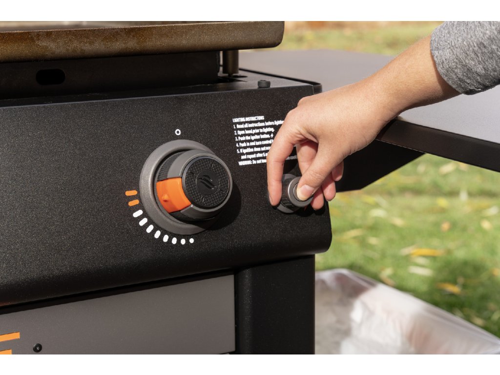 - 36” Omnivore Griddle Plate: Rychlejší nahřátí a obnovení teploty, rovnoměrné rozložení tepla a vyšší palivová účinnost. Integrované ochrany proti větru pomáhají udržet teplo a zároveň zachovat chladnější boční police.