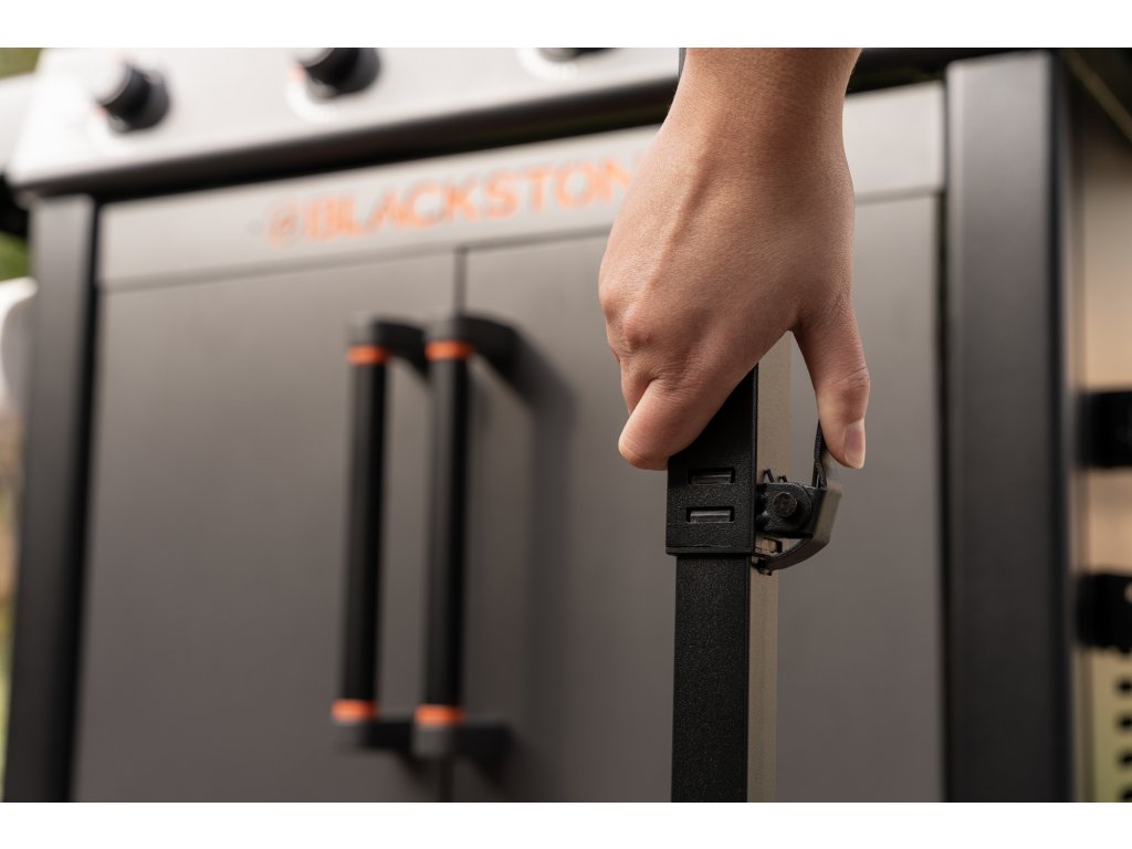 - Zesílený poklop s konstrukcí „X“: Elegantní a pevný poklop chrání grilovací plochu a udržuje ji čistou mezi jednotlivými použitími.