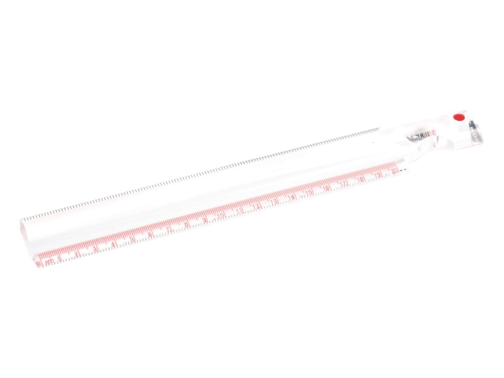 Pravítko Vitility s vypoulenou vrchní stranou, která funguje jako lupa s 2 násobným zvětšením. Pravítko dlouhé 20 cm je na pravé straně zakončeno rukojetí.
