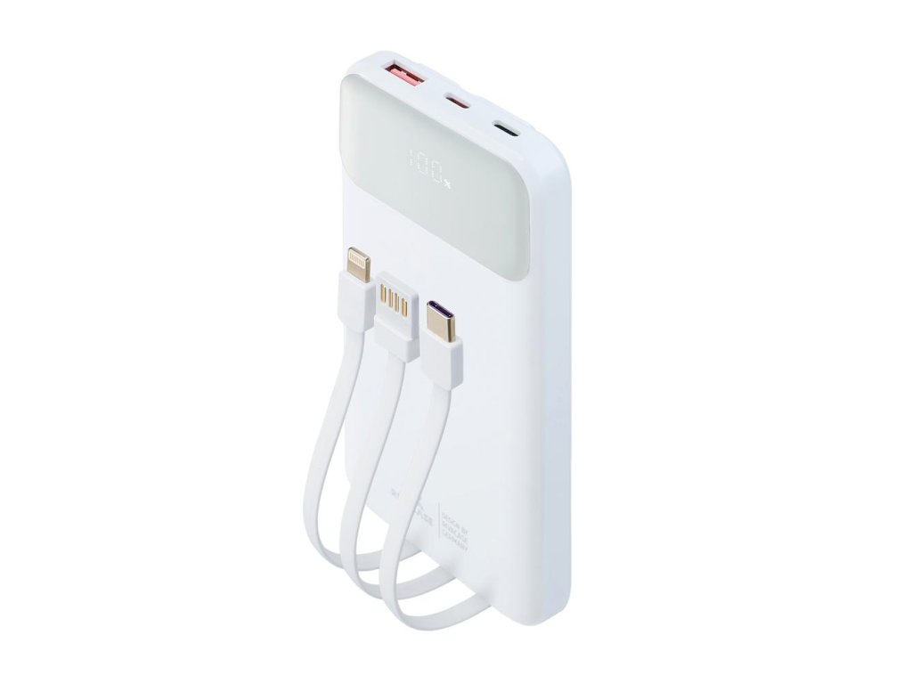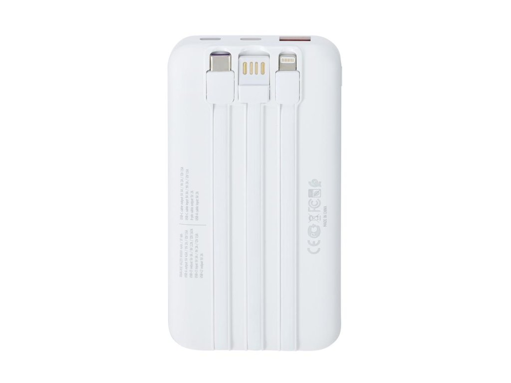 Riva Power VA2211 powerbanka 10000mAh QC/PD, 3 integrované kabely, bílá