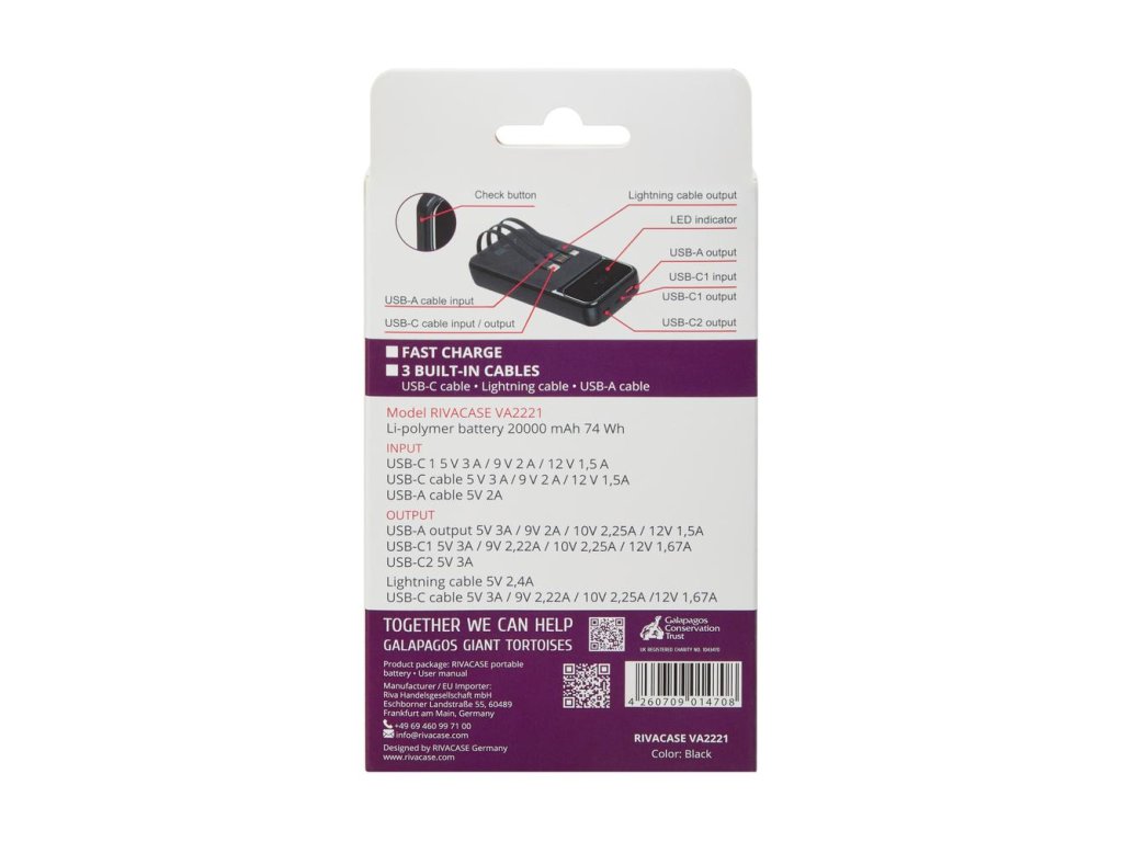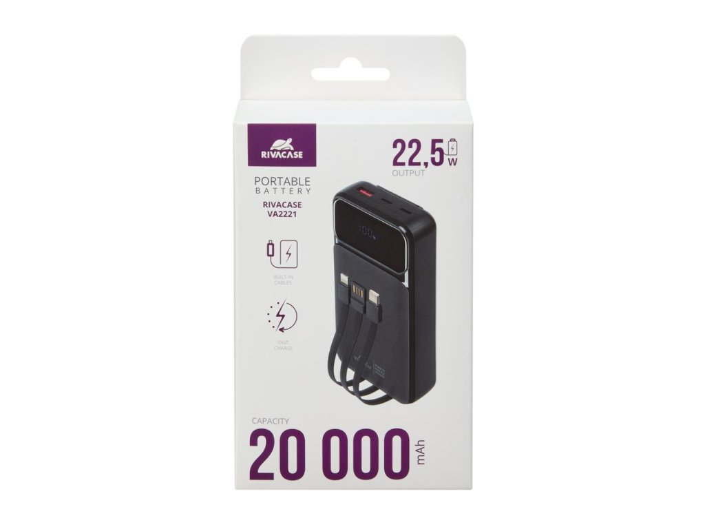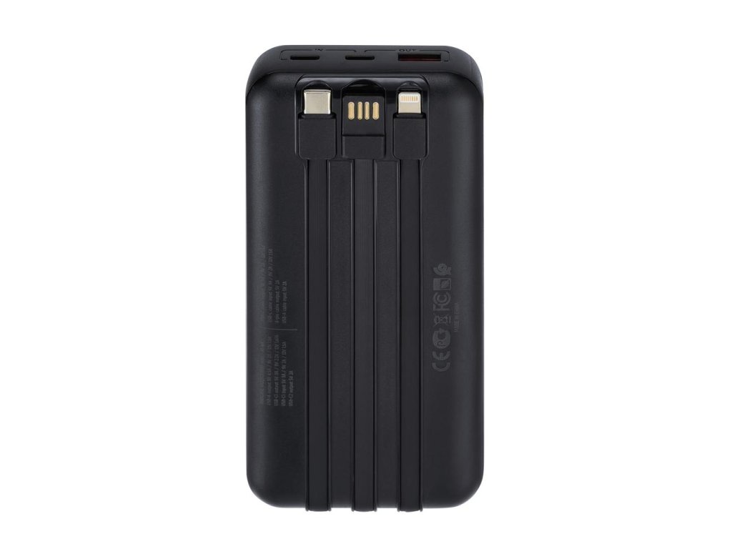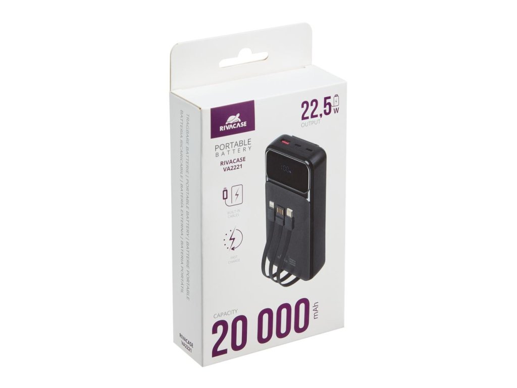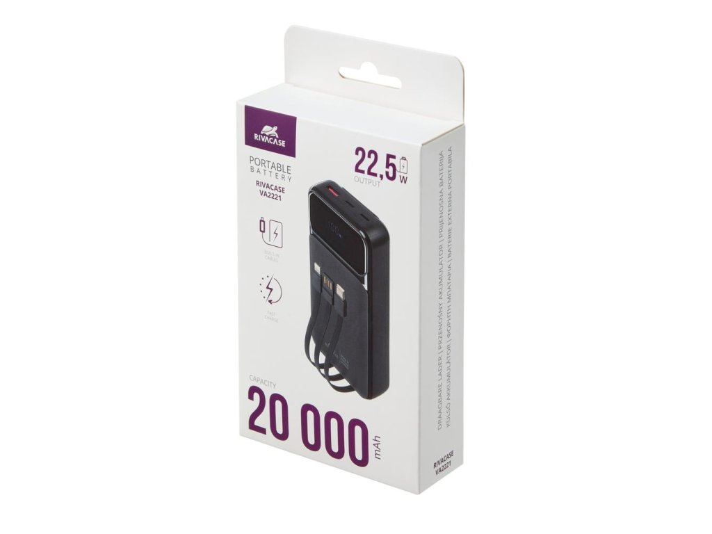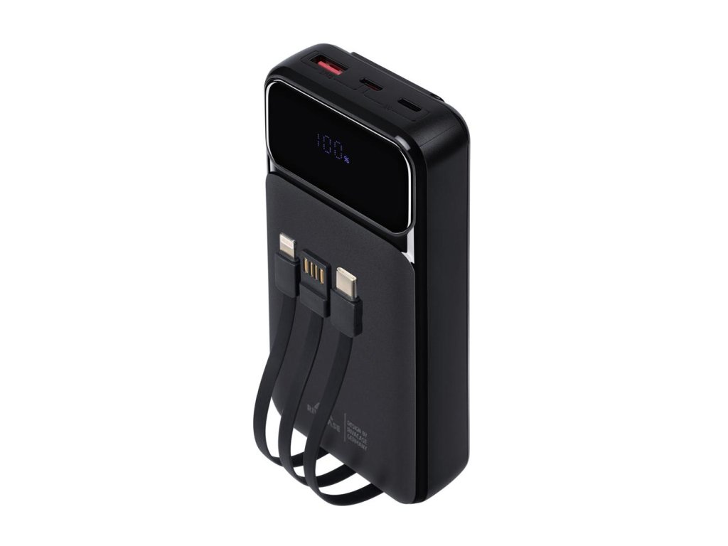 Riva Power VA2221 powerbanka 20000mAh QC/PD, 3 integrované kabely, černá