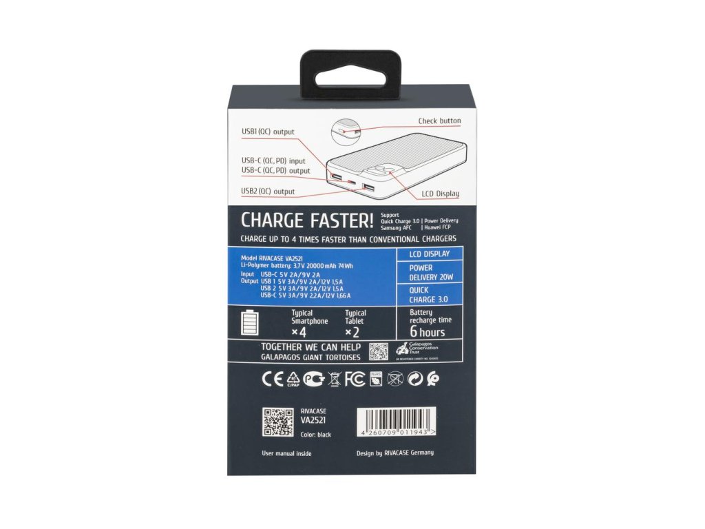 Riva Power VA2521 powerbanka Quick Charge 20W s LDC displejem 20000mAh