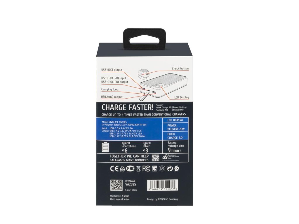 Riva Power VA2585 powerbanka Quick Charge 20W s LDC displejem 30000mAh