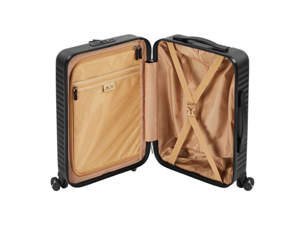 - Prostorný zadní oddíl s křížovými fixačními popruhy, ideální na oblečení a osobní věci