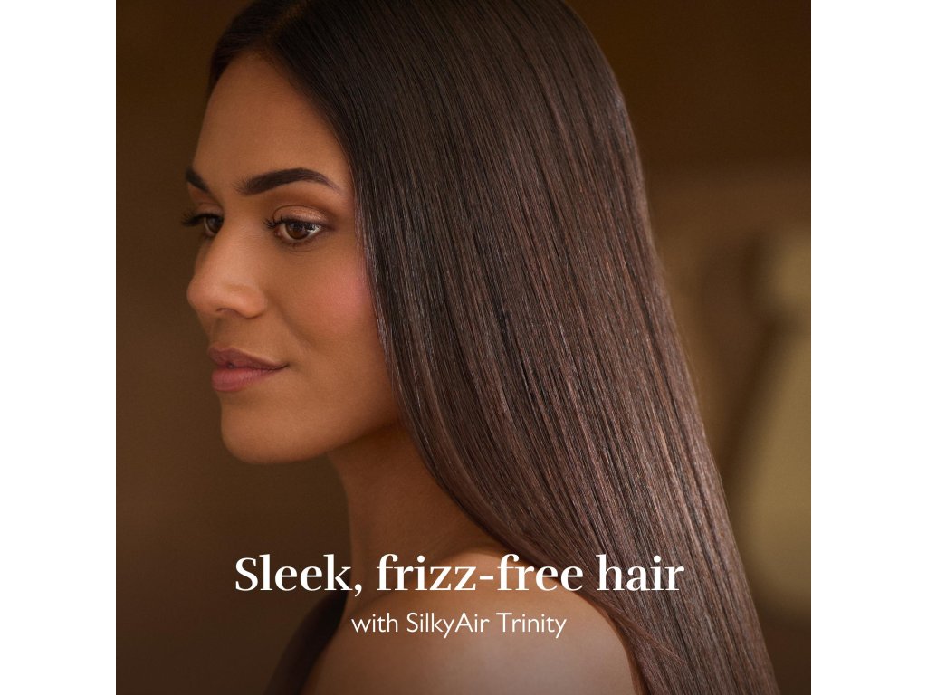 SilkyAir Trinity je revoluční spojení výkonného fénu, precizního styleru a mokro-suché technologie v jednom elegantním a lehkém nástroji. Keratinem obohacené keramické a nylonové destičky, nastavitelná teplota a koncentrovaný proud vzduchu vám zajistí výsledek jako ze salonu - ať už vlasy jen sušíte, uhlazujete nebo tvarujete přímo z vlhkých.