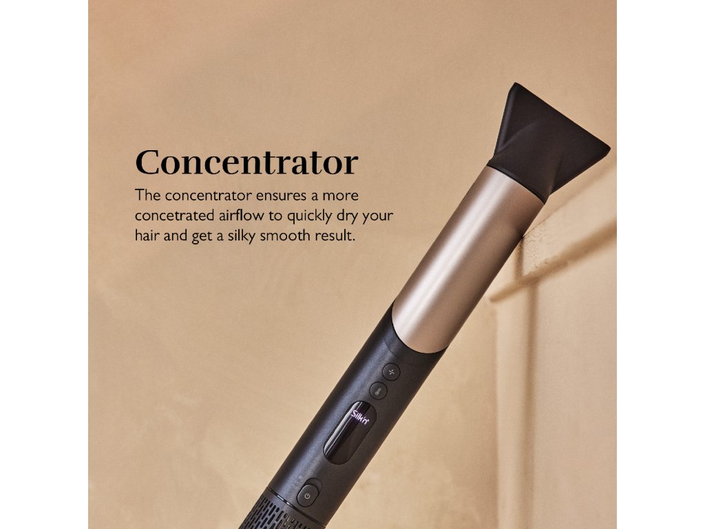 Koncentrátor vytváří soustředěnější proud vzduchu pro rychlé vysoušení vlasů, což je ideální pro uhlazený vzhled. Anebo můžete snadno upravovat nebo vysoušet různé části, aniž byste vlasy rozčesávali.